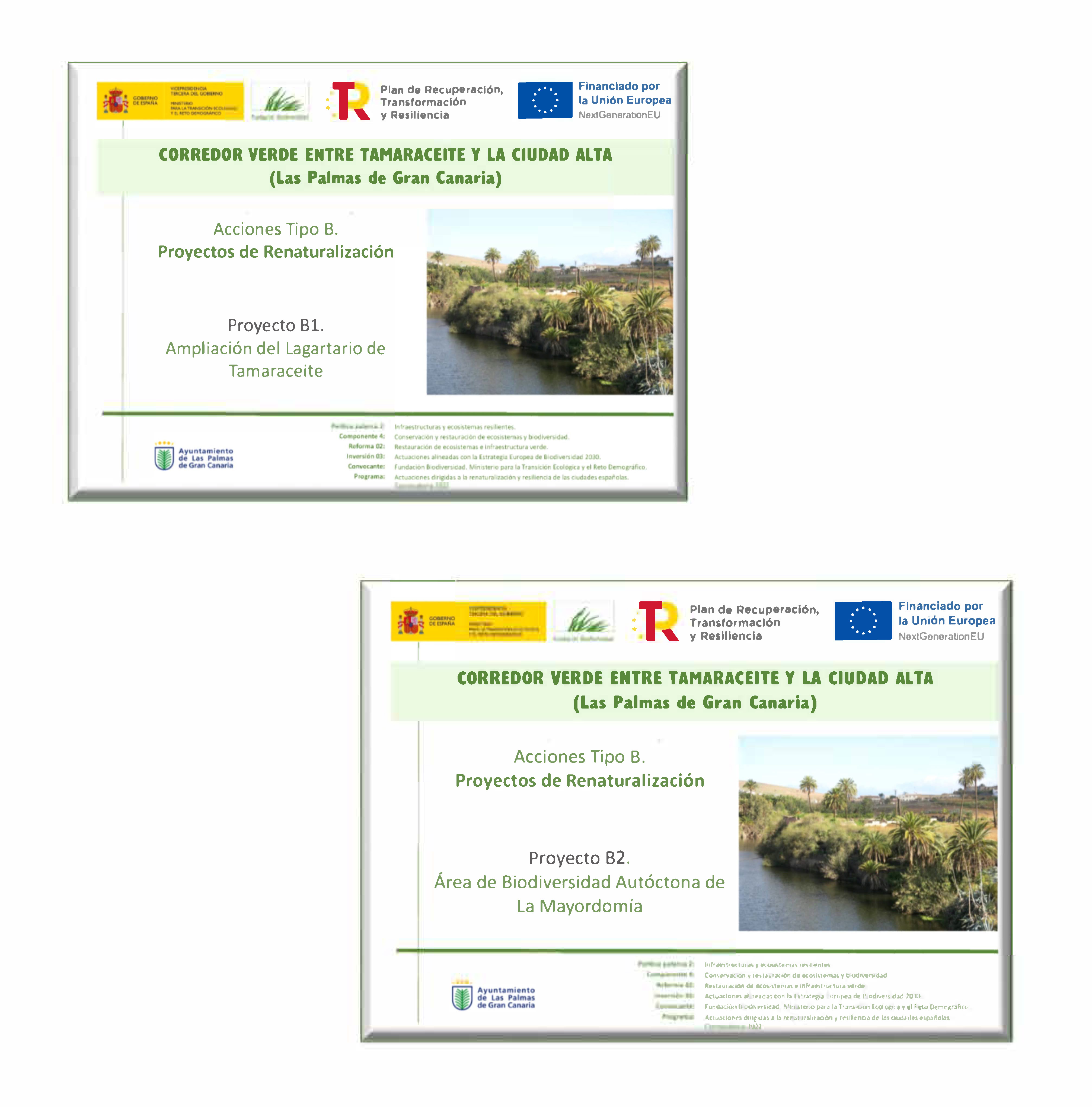 El proceso de renaturalización de Las Palmas de Gran Canaria en los barrios del Cono Sur se acompaña de un volumen importante de información sobre la realidad territorial, el proceso de regeneración urbana, la gestión de la biodiversidad e infraestructura verde y la implementación de los objetivos de la Fundación Biodiversidad, del Plan de Recuperación, Transformación y Resiliencia de España y de la Unión Europea a través de los fondos Next GenerationEU.