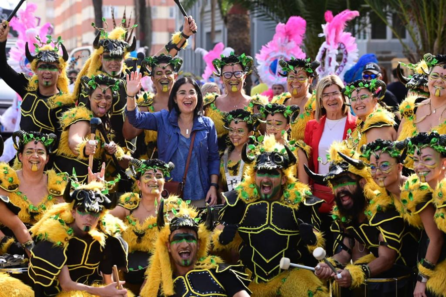 En total, la música de 15 carrozas y la complicidad de todos sus ocupantes animaron la Cabalgata ante la mirada de miles de personas que interactuaban con ellas a su paso. Los más animados no dudaron a unirse en un recorrido al que también se sumaron los tambores de las batucadas Samba Isleña y Paixao, las comparsas Lianceiros Junior y Brisa de Volcán y las murgas infantiles Los Trapasitos, Los Chachitos y Los Biznietos de Sarymanchez.