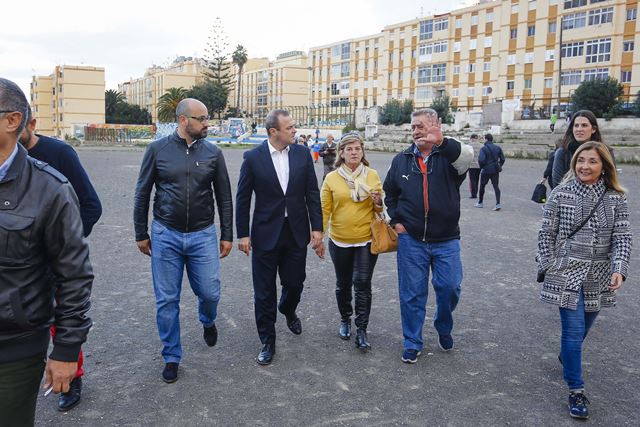 El Alcalde de Las Palmas de Gran Canaria, Augusto Hidalgo, se comprometió ayer, tras reunirse con los vecinos de Lomo Blanco y escuchar sus reivindicaciones, a examinar, junto con los técnicos municipales, la posibilidad de acometer una serie de mejoras y pequeñas obras en el barrio que mejoren las condiciones de vida de los residentes en la zona. Una de las propuestas vecinales que el regidor encargará que evalúen los técnicos municipales, es la de crear un parque deportivo y de ocio en el suelo del viejo campo de fútbol de Lomo Blanco, un terreno actualmente abandonado junto al nuevo campo de fútbol.