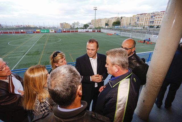El alcalde también se comprometió a valorar la solución más factible para adecentar el acceso al nuevo campo municipal de fútbol del barrio, que actualmente está sin asfaltar. Esta vieja reivindicación de los vecinos de Lomo Blanco cuenta con la dificultad añadida de que los terrenos sobre los que está habilitado el actual acceso no son de propiedad municipal.