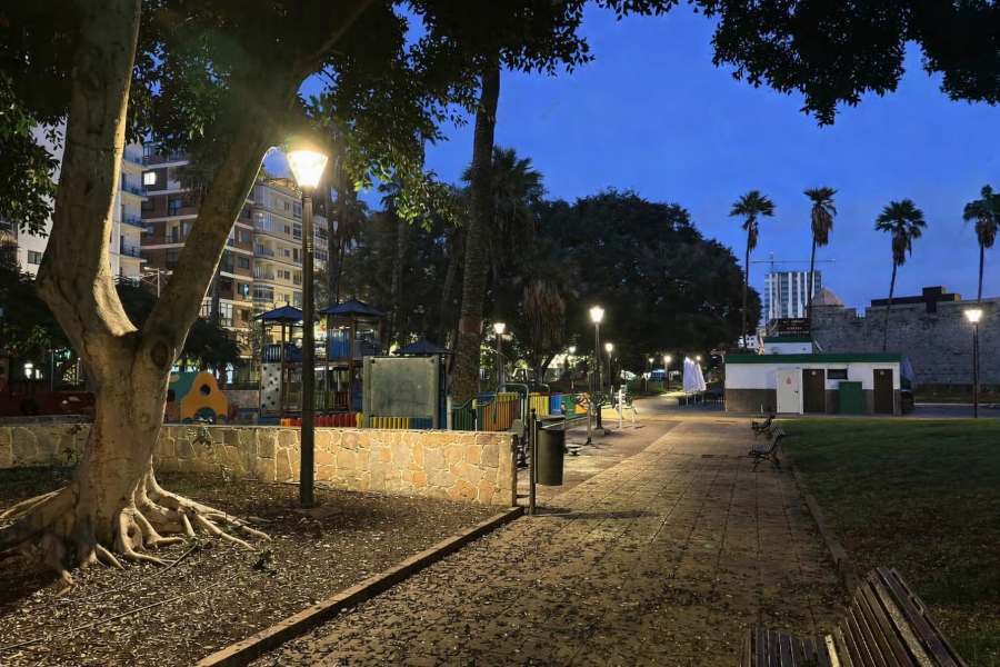 Las Palmas de Gran Canaria, 21 de enero de 2026. El Ayuntamiento de Las Palmas de Gran Canaria ha finalizado en el parque del Castillo de La Luz la sustitución de las luminarias LED, dentro del proyecto para la instalación de más de 1.500 luminarias con tecnología LED en los barrios de La Isleta y Las Coloradas. Este proyecto está financiada a través del Plan de Cooperación del Cabildo de Gran Canaria con los Ayuntamientos con un presupuesto de 765.050 euros.