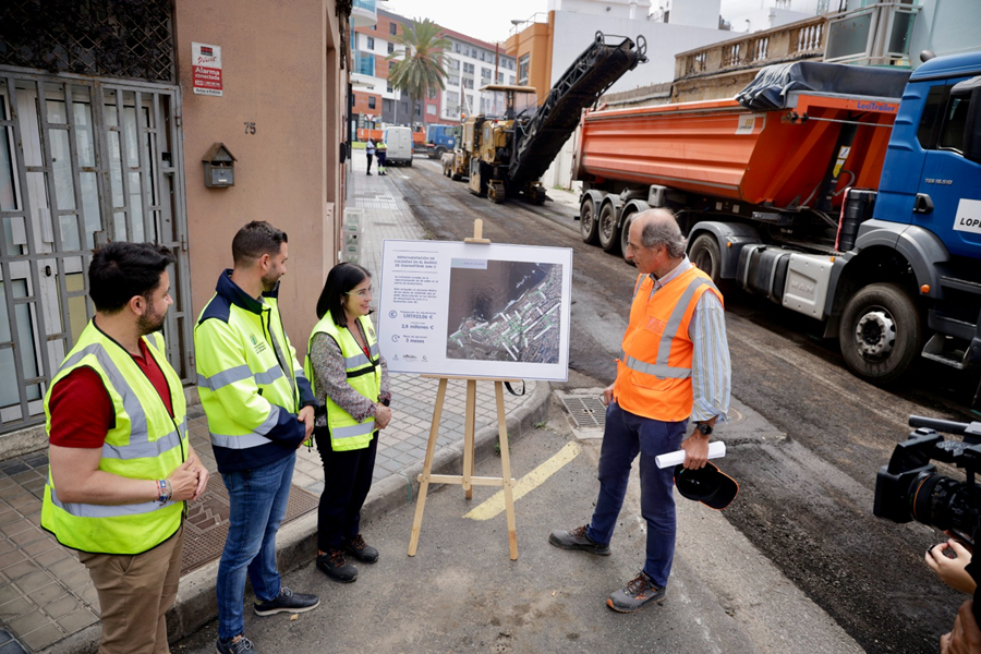 La alcaldesa, Carolina Darias, comprueba el inicio de unos trabajos largamente demandados que mejorarán el viario en una veintena de calles del barrio