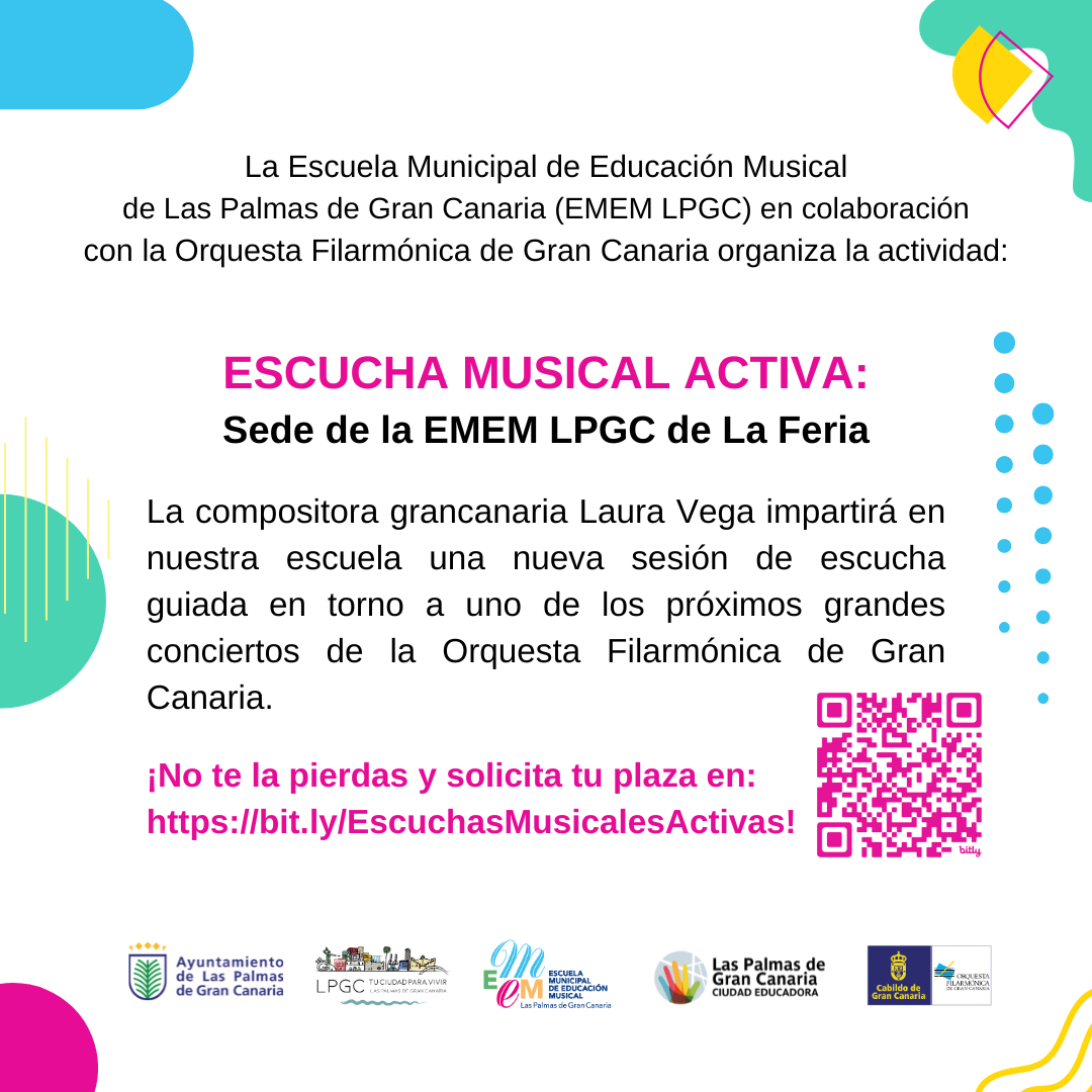 Para solicitar la inscripción u obtener más información sobre la iniciativa, puede consultarse bit.ly/EscuchasMusicalesActivas o contactar con la escuela a través del correo ememlaspalmas@ememlaspalmas.com.