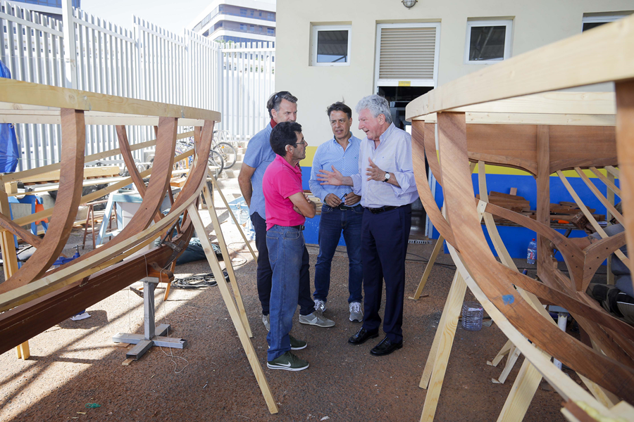 El concejal, acompañado por el presidente de la Federación de Vela Latina Canaria, Bernardo Salóm, ha conocido de primera mano las tareas de construcción de estos dos botes siguiendo las técnicas tradicionales de la carpintería de ribera, “un oficio que ha estado a punto de desaparecer en la isla de Gran Canaria y que sin embargo podría tener numerosas oportunidades laborales como ocurre en la industria náutica de La Rochelle”, apuntó.